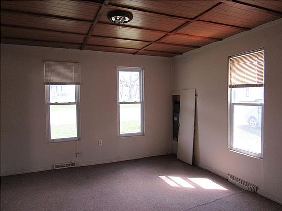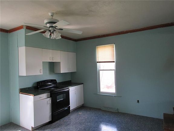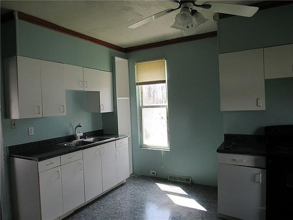Large eat - in kitchen has updated cabinets and gas stove, bath on the first floor roughed - in could possibly be a full bath or 1st floor laundry room, extra - large bath on the 2nd floor, 3 bedrooms, off street parking, beautiful flat yard with an amazing view. Covered side porch. Living room and dining room.