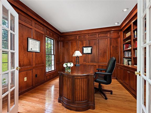 Stunning custom-built brick Cape Cod home in Edgeworth on 2.4 acres overlooking unobstructed views of the valley with complete privacy. This 5 bedroom, 4.5 bath home, with a 3-car garage & 1st floor primary suite, is perfect for those looking for easy to maintain land 1.5 miles to the Village but also just around the bend from Sewickley Heights. The open floor plan with tremendous natural light, hard wood floors, multiple rooms with walls of built-in bookshelves & gas fireplaces, wainscoting paneling throughout, finished walkout basement & new bathrooms are a rare find. 3 of the 4 bedrooms upstairs share an updated hall bath & the 4th large bedroom has its own bath. The expansive deck overlooking the valley off the family room opens to the kitchen that boasts a Subzero refrigerator, Thermador double ovens & well-crafted cabinetry. The 4-seasons room, adjacent to the deck, charms with its own fireplace. With a newer roof & updated mechanicals this home is delightfully move-in ready.
