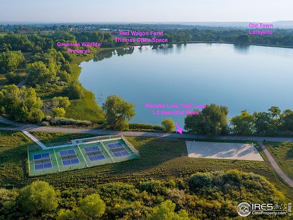 Enjoy front-row access to Waneka Lake Park in this inviting 4-bedroom, 3.5-bathroom home in a quiet cul-de-sac. Filled with natural light, vaulted ceilings in the living room, and hardwood floors throughout most of the main level. Both the dining room & and family room off of the kitchen open up to a private backyard escape, that features lush perennials and a large, irrigated garden with plenty of raspberries, mint & more. The primary includes an updated ensuite and views of Waneka Lake. Down in the finished basement, there is a new, luxurious full bathroom and a large rec area that is an ideal media or game room, playroom, or lounge area. The nicely-sized laundry/mechanical room includes a utility sink and storage for convenience and functionality. There is an additional washer/dryer hook up on the main floor that is also a great pantry space. Best of all, Waneka Lake Park is just outside your door. This 147-acre recreational and wildlife refuge offers a scenic 1.2-mile fitness loop, seasonal boathouse, paddle boats, fishing, pickleball and basketball courts, disc golf, birdwatching, and endless outdoor activities. This property is perfect for relaxing, enjoying the outdoors or entertaining. In addition, the property has quick access to Old Town Lafayette, Downtown Louisville or an easy commute to Boulder or Denver.