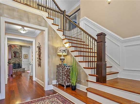 One of a kind CUSTOM built home that is great for everyday living as well as entertaining. Enter to find wide planked hardwood floors in the main living areas, a home office w/ french doors for privacy & formal dining room. The main flr owner's suite has dual vanities, soaking tub, separate water closet & spacious walk-in closet. Continue to the heart of the home to find the great room w/ soaring ceilings, corner stacked stone fireplace & wall of windows that overlooks a level backyard w/ a deck that steps down to a paver patio w/ fire pit made for hosting your next bonfire. Well appointed kitchen has tons of cabinets & counter space w/ lg breakfast bar, gas range, ss appls, granite ctrs, dbl ovens & walk-in pantry. Drop zone & laundry area conveniently located by the door to the oversized 2-car garage. Upstairs you will find 3 more bdrms & a huge 2 sectioned bonus space w/ custom built wet bar perfect for a game room, movie nights or a gym! Homes like this do not come up very often!