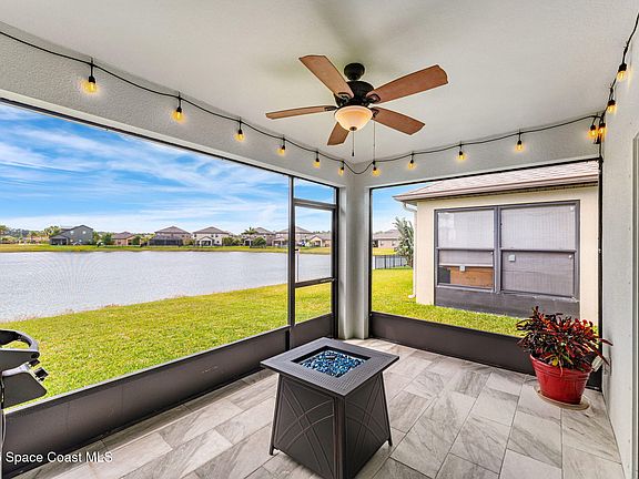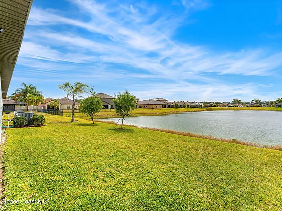 Waterfront beauty in the Gated Community of Sawgrass Lakes Preserve in West Melbourne! This 4BD/ 2BA home w/ office/flex space offers a spacious open floor plan w/ vaulted ceilings, crown molding & New bamboo flooring throughout the living space & a custom front entry design. The kitchen features granite countertops, sleek glass tiled backsplash, a large island with breakfast bar, rich wood cabinetry & New stainless appliances in 2022. The spacious family room flows to a covered porch, perfect for indoor-outdoor living. The primary suite offers porch access, a walk-in closet w/ barn doors, dual sinks w/ granite countertops, a walk-in tiled shower & separate tub. New HVAC & exterior paint in 2024! Resort-style amenities include a beach-entry pool, water slide, clubhouse with gym, tennis courts, community events & more! Ideally located close to top schools, major employers like Northrup Grumman & L3Harris, plus easy access to I-95, shopping & dining. Your dream home awaits!