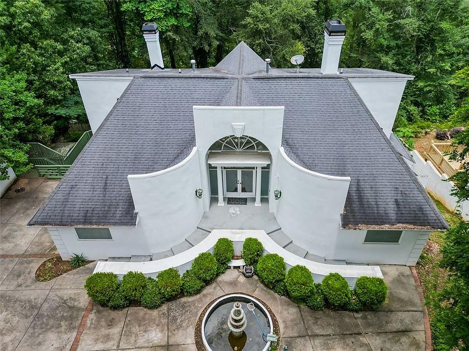 Welcome to this uniquely designed 4 bedroom/4.5 bath contemporary luxury home in sought after Roswell! As you enter the grounds, you will be greeted by the tranquil fountains surrounded by ample parking. Step into this exquisite home with its open and expansive floorplan. It’s adorned with abundant natural light flowing throughout, filling the sunny living room with floor to ceiling windows. This beautifully appointed home is perched high above the Chattahoochee River elegantly enhanced by recessed lighting, complemented by the charm of built-in bookcases and the warmth of hardwood floors. Indulge in the serenity of the eat-in area just off the kitchen, creating the perfect place to start your day and perfect for entertaining. The kitchen itself is a culinary haven, boasting ample counter space for meal preparation, high end appliances, and recessed lighting that illuminates the space, perfectly accentuating the gleaming cabinetry. Retreat to the primary bedroom on the main level, where you'll discover a haven of comfort and style with enough room for a sitting area and fireplace inviting you to unwind and bask in its soothing ambiance. Prepare to pamper yourself in the luxurious primary bath, complete with a generously sized step-in shower, a separate split vanity provides the personal space you need, a whirlpool tub that promises pure relaxation. The dramatic dual staircase leads you to spacious secondary bedrooms with private ensuites and Juliette balconies off each room overlooking the family room. Terrace level includes catering kitchen, media room, extra bedroom, and full bath. Enjoy the tranquility of the private backyard with multi-level decks, outdoor fireplace, and scenic views of the greenery and river. Exclusive living, just a brief stroll to nearby restaurants on Roswell's popular Canton Street and Roswell Mill. Home will need interior renovations.
