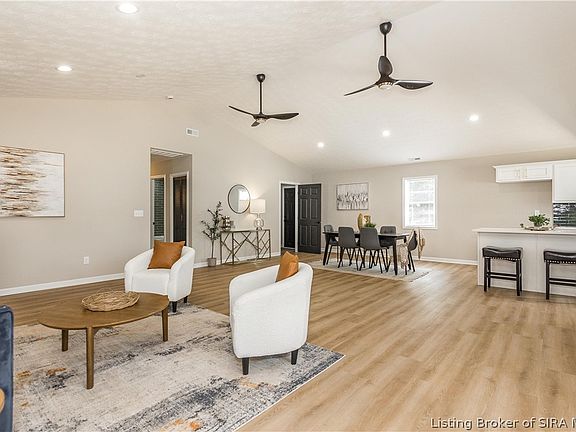 Now is your chance to own a like-new home in New Albany! It has three bedrooms, two baths, all the modern features, new drywall, and new fixtures. Enter from the covered front porch into the great room. This modern open floor plan has room for a living area, dining area, and even more space for another use. Nestled in one corner is the brand new kitchen. New cabinets, quartz countertops, and an island makes this kitchen ideal for a professional chef or for entertaining a small crowd.