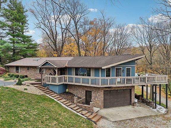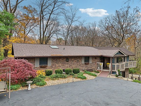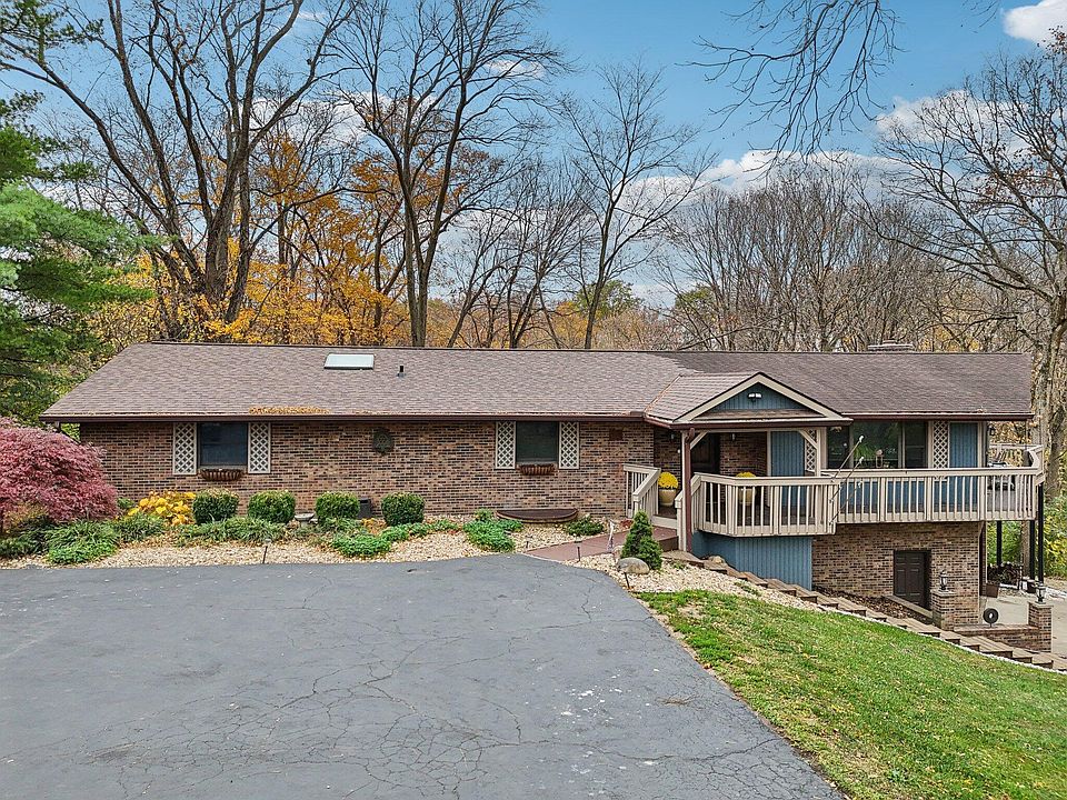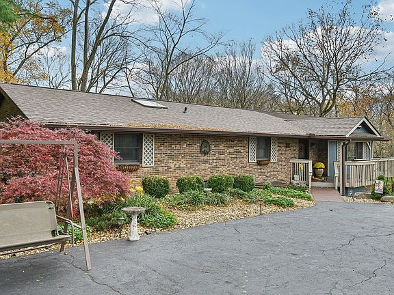 This amazing ranch home offers the rare opportunity to feel like you live in the middle of nowhere while being only minutes from town. Sitting on just over 5 wooded acres, this 4 bedroom, 3 bath home offers stunning views from every angle. The main floor has a large open living and dining area, 3 seasons sun room and kitchen with upgrades like granite countertops and stainless appliances. 3 bedrooms and 2 full baths complete this space. The walkout basement offers a 4th bedroom and full bath, large living area and a bonus/flex space. The garage is oversized with an extra storage room. Outside, you will find a creek on the backside of the property, plenty of green space, a chicken coop, zip line and garden! Home has geothermal heating and cooling, a reverse osmosis system and iron system.