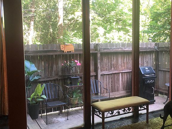 Lg LR 20 x 14 with two floor to ceiling windows, ceiling fan, entry closet.DR 8 x 10 with sliding glass doors into side patio,kitchen w/island sink, Dishwasher, garbage disposal.sun room 10 x 12 has three consecutive 8 foot windows overlooking patio, private patio .unit gets tons light. Quiet wide tree-lined street and midtown is in walking distance to most amenities. Backyard is laid out for entertaining with two grills, one charcoal with smoker one gas, dining table various conversation areas,bird baths & foliage. Yards cut and walkways and seating areas blown off once a week by maintenance man .Fire pit seats 10 to 12. Close to Beltline,Piedmont Park, Fox theater, Trader Joe s, beltline, clubs, cafes, Georgia Tech, Georgia state, Emory & 75/85 We pay for water and sewage, sanitation, outside lighting and yard maintenance