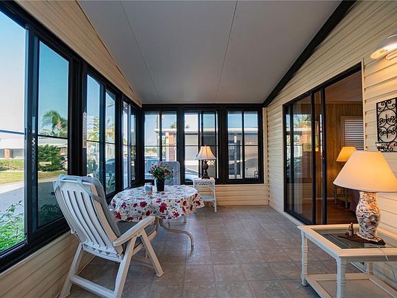 Looking for an affordable manufactured home in a GREAT 55+ community? This home located in Maple Leaf Golf and Country Club has pretty much everything you need to move right in except your tooth brush and swim suit as it's being sold furnished with just a few exclusions! Not only does it have 2 bedrooms and 2 baths but also has THREE great outdoor spaces with a 17 x 9 enclosed front lanai, a 16 x 12 screened area in the carport AND a 12 x 12 patio behind the shed. The kitchen has a pass through to the living room making it feel more open and the pass through has shutters in case you want to close off the kitchen. The dining area has built in shelving to use for storage as well as collectible display. Bring your own ideas and make it your own. No dog allowed, one indoor cat only. Maple Leaf is a resident owned 55+ community with an active resort lifestyle. Activities include 4 heated swimming pools, 5 tennis courts, bocce ball, lawn bowling, 2 shuffleboard court centers, 2 hot tubs, 2 saunas, fitness center, woodworkers shop, pottery studio, 2 pickleball courts, 2 restaurants with full service bars and over 75 clubs and activities. Price includes $40,000 share. Maple Leaf is in the process of installing a community wide fiber optic internet network. Each home will be connected to this network in 2020 for a low monthly fee of $30.95. It's true what they say about Maple Leaf, "it's all about the lifestyle". Shown by appointment only. Some notice required for showings.