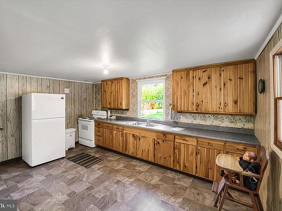 Enjoy peaceful country living with this 3-bedroom ranch set on nearly 2.5 picturesque acres. DeWitt Run flows through the property, surrounded by fruit trees, blueberry bushes, rhubarb, and Jerusalem artichokes. Inside, you’ll find real wood kitchen cabinets, built-in bookshelves and mini-split units for efficient heating and cooling. One bedroom currently serves as the laundry area, and the basement includes an additional room assessed as a 4th bedroom. Outdoor highlights include a small two-story barn, a chicken coop needing some TLC, a carport with a paved floor, raised flower beds, and a concrete side area. Explore the switchback trail leading to a secluded picnic spot—ideal for hunting, bird watching, or simply relaxing in nature. The property also offers both dug and drilled wells, plus a spring on the hillside. Triple-pane windows add efficiency, and there’s plenty of storage, including space beneath the back porch.