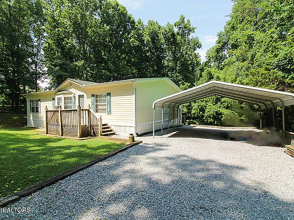 Welcome to relaxed living at it's best. This home features a spacious living area with a propane gas-log fireplace, full kitchen with lots of cabinet space and eat-in dining. There is a handicap accessible ramp from the carport to the covered porch, where a large sliding-glass door going into the kitchen is located. Laundry room is located off the kitchen. On one side you'll find the master bedroom; it has a large master bath with a double vanity, a large garden tub for soaking and also a step-in shower. The second bedroom on the opposite side has a walk-in closet. It's also located next to the second full bath with a tub-shower across from the bonus room, which could be a home office. Kitchen comes with an electric stove, refrigerator and dishwasher. The HVAC System was replaced (2019), a new roof (2021), and hot water heater (2022). Home is 28'W X 48'L for a spacious interior with vinyl siding and underpinning for easy maintenance. This is a nice subdivision with a little space, sitting on .36 acres with a gravel driveway and a 19' x 20' two car carport, level front yard, and a gently sloping back yard to the wood line. Property extends to Timberlake Circle on the back side which provides privacy with the wood line. This would be great for a first time home buyer, retiree or a second home. If you like fishing, bring your fishing boat or jet ski, because there is a gravel boat launch at the end of the road, offering seasonal lake access. An open easement 12 feet on each side of the common boundary line between lots nos. 62 and 63 is reserved for access for all lot owners to Douglas Lake. This home could be a permanent residency or overnight rental. It's just a short 10 minute drive to Newport Highway where several stores and gas stations are located, along with a Dollar General, a new Food City with a deli and pharmacy for all your dining needs.