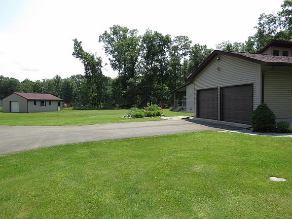 Beautiful contemporary RANCH resting on 4.62 acres of serenity. This retreat boasts, both, a secluded wooded area as well as over an acre of open, level field. The kids can play while the adults entertain on the 600 sq ft covered, Trex deck! The custom built home?s vaulted ceilings enhance the open-concept, single-floor plan. Seated in the dining area, your eyes will be riveted to the impressive natural stone fireplace and massive cherry beams and column that adorn the family/living room. Climb the beautiful, wood spiral staircase leading to the LOFT- an office, 4th bedroom or play area. Other features of this home are granite counter tops and peninsula bar seating in the kitchen, elegant hardwood floors throughout, and a master bedroom that claims both a walk-in and standard closet. In addition to the 2-car built in garage, a special, bonus garage/workshop/man-cave awaits.