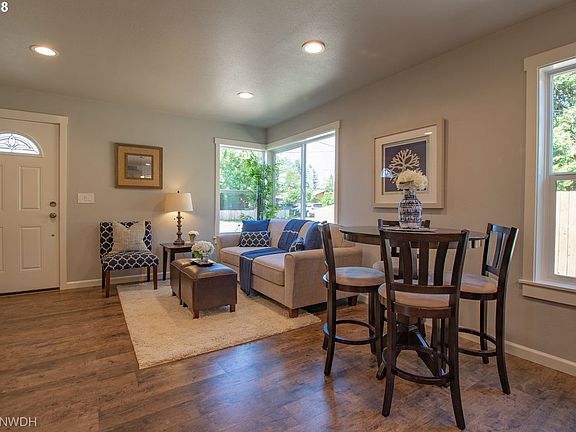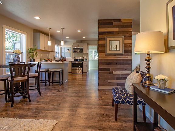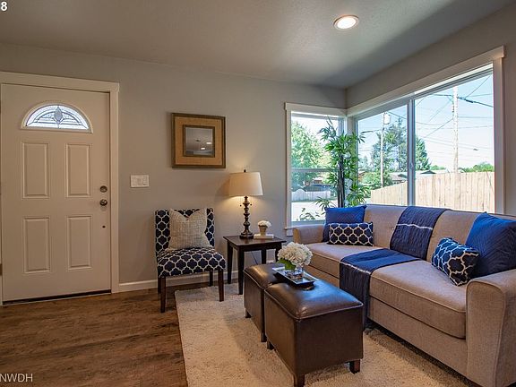 Spectacularly remodeled home on large lot. Feels like a new home. Features include new roof, windows, flooring, paint & landscaping. Kitchen and baths are modern and clean with new vanities, cabinets, and appliances. You'll love the rustic oak laminate flooring, the farmhouse sink, and barn door pantry. The third bedroom has its own private entrance. Plenty of off street parking and storage with garage/workshop. This one won't last long
