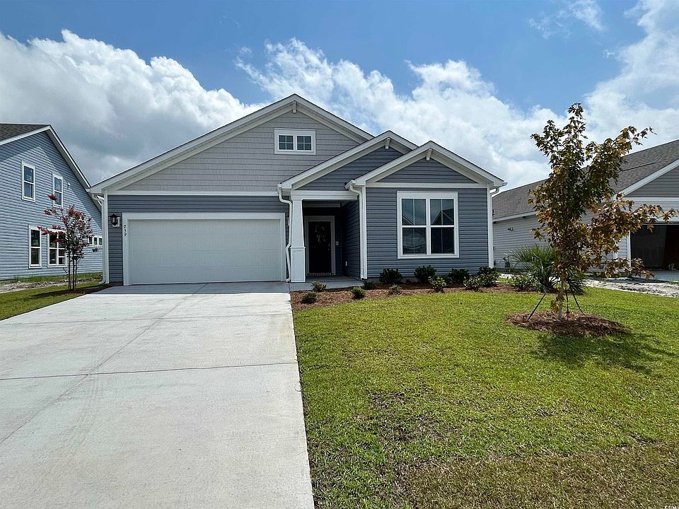 This is the Georgetown home plan, with 3 bedrooms, 2 bathrooms, Carolina Room and a 2-car garage space. Lots of room between homes so you aren't an arm's length from your neighbor! All homes in Sunset Landing are 100% Energy Star Certified and Indoor Air Qualified, meticulously tested, and rated by an independent third party to ensure increased comfort and reduced utility costs. Now in the Ready Energy Series our homes are built with 2x6 exterior walls (Rvalue 21) Conditioned attic space (Rvalue 40) Spray Foam Insulation, Insulated slabs, Tyvek Whole House Weatherization System, Low-E performance windows, soil compaction testing, blower door testing, and much more! The homes are equipped with a Riannai gas tankless water heater, SEER 17.5 Goodman variable speed HVAC, and Whole house Air Fresh System (ERV), Electric Vehicle charging outlet in the garage, and roofs are engineered for solar panels! Surrounded by a perimeter of lush trees, Sunset Landing stands as a natural gas community unveiling a fresh series of single-family homes. This intimate neighborhood, with only 193 homes, grants residents access to on-site amenities, including a clubhouse, pool, sidewalks, and regular trash and bi-weekly recycling collection. Strategically positioned less than 1 mile from Highway 31, Sunset Landing provides swift access to explore the entire coastline. Nestled within the fishing and boating town of Little River, South Carolina, this area offers a peaceful retreat from the bustling Myrtle Beach. Experience a laid-back atmosphere with waterfront dining, boutique-style shopping, numerous marinas, and championship golf courses—all minutes from Sunset Landing! Begin your exploration today.