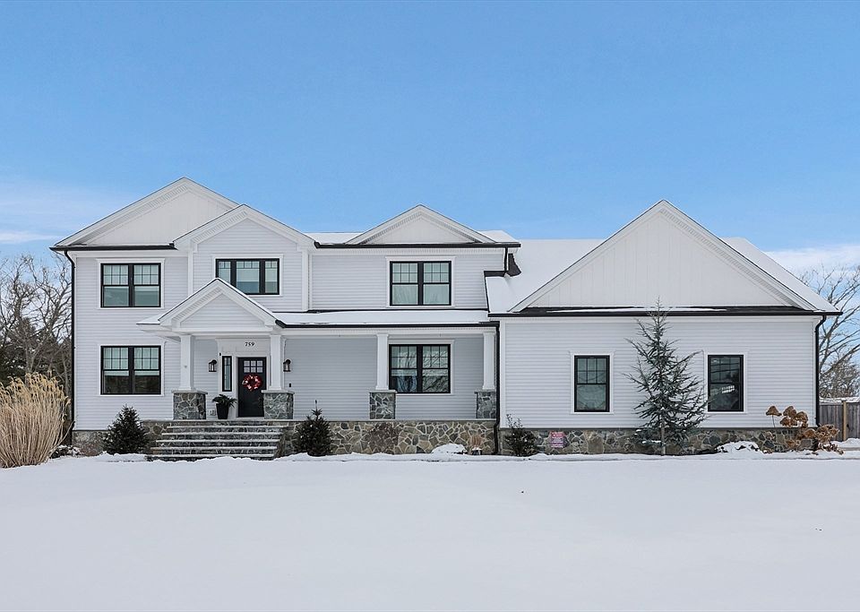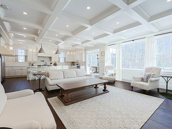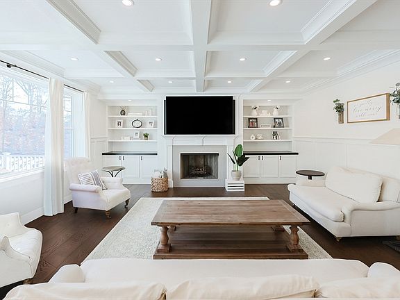 This exceptional custom Colonial blends luxury, design, and functionality on an expansive lot. Inside, dramatic coffered ceilings and exquisite craftsmanship set the tone. The chef’s kitchen boasts inset cabinetry, a massive island, designer tile, luxury appliances, and a walk-in pantry with custom built-ins. A sunlit dining area flows into the inviting family room with a gas fireplace and custom entertainment center. A sophisticated office and a stylish mudroom with built-ins complete the first floor. Upstairs, four spacious bedrooms include a lavish primary suite with a spa-like bath, freestanding soaking tub, and an oversized walk-in shower with rain and body sprays. The finished lower level is a showstopper, featuring a state-of-the-art home theater, gym, and playroom. Step outside to a true entertainer’s paradise—an expansive covered paver patio with an outdoor kitchen, fire pit, hot tub, and gazebo-all designed for unforgettable lifestyle.This extraordinary estate offers it all.