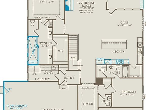 The Lyon boasts a flowing layout with oversized kitchen island and built-in appliances, a spacious dining area that can easily fit a large table to accommodate many guests. The gathering room offers a fireplace and a covered rear porch perfect for entertaining. The Owner's Suite includes tray ceilings, bay windows, laminated shelving in the closet and a luxurious zero entry walk-in shower with double shower heads. Guest bedroom suite with full bath, large flex room with French doors. Large size pantry and laundry room complete this home. Home includes luxury vinyl throughout the main level, tile in bathrooms & laundry room and upgraded carpet in the bedrooms.1500+ SqFt unfinished basement with rough-in for full bathroom and egress window.