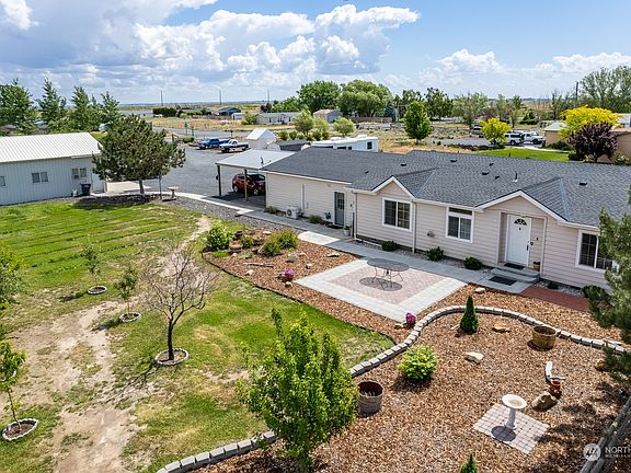 Looking for a breathtaking view and ample space? Look no further! This property boasts 4 bedrooms, 3 bathrooms, 3 living areas, and both a full kitchen and kitchenette. Enjoy sweeping views of McConihe, Moses Lake, mountains, and stunning sunsets from the comfort of your own home. The property includes a shop, carport, covered RV parking, and a large driveway with plenty of room to maneuver your vehicles. The gated entrance leads to a fully fenced pasture, fruit trees, garden space, landscaping, and a partially underground heated saltwater swimming pool. Inside, the home offers comfortable living spaces, including a separate apartment. Total unverified living space is over 2800 square feet. 5 minutes from boat launch at Connelly Park!