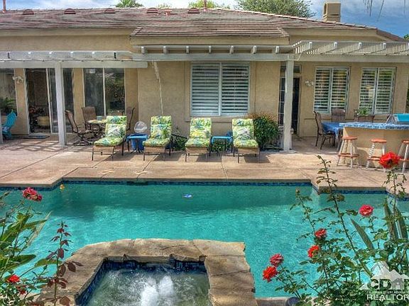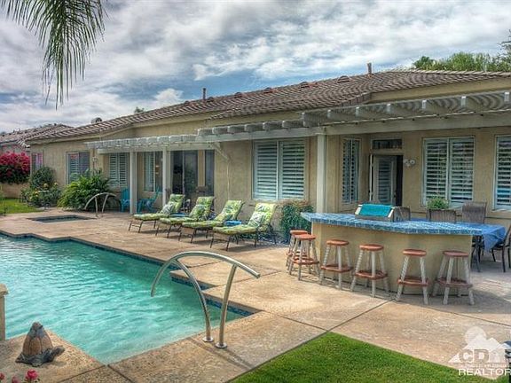 Welcome to one of the desert's most desirable & centrally located gated communities with 113 homes. Beautiful rose bushes, lemon, grapefruit & lime trees on an 11,326 sqft lot with no traffic noise. Great Room/DR has a stunning view of the pool & large yard. Shutters throughout & ceiling fans with 3 AC's. 5 bedrooms with a casita, 4 bedrooms have CA Closet inserts & 2 have built-in book shelves & storage drawers. All toilets have been replaced with new low flow units. Tile throughout. Large LR/DR has huge slider to back patio. Den & kitchen area has a wet bar, fireplace, eat-up bar, eat-in kitchen & double walk-in pantries. Stainless Kenmore appliances, Electrolux double ovens & large fridge with freezer drawer. Knobs installed on drawers & cabinet doors. Patio has Alumawood cover across back of home with misting system. Built-in BBQ, bar & 5 stools. New salt water pool w handrails. Casita has AC & Aluma-wood cover. New Whirlpool Washer/Dryer. 3 car attached garage with storage cabine