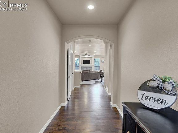 This stunning, Pre-Inspected, Ranch floor plan welcomes you home with tons of updates in The Glen at Widefield! Completed in 2019, this home dazzles with an extended countertop in the Kitchen, Engineered Hardwood Flooring throughout the main level, underground sprinkler system, fenced-in backyard, 10 foot basement ceilings and Central Air Conditioning – this home truly has it all! A long corridor welcomes you from the front door – followed by the open main level floor plan connecting the Kitchen, Eat-In Area and Living Space – perfect for entertaining! The Kitchen greets you with granite countertops, stainless steel appliances, a walk-in pantry and abundance of cabinet space! A sit-up breakfast bar and adjacent eat-in area make this Kitchen great for entertaining a large group or enjoying a quiet coffee in the morning! The Living Room shines with a gas fireplace and abundance of windows allowing for natural light. Turn the corner to the main level Master Bedroom with adjoining 5 pc bathroom and walk-in closet – all updated with modern touches while feeling cozy at the same time. Double Vanity, Free Standing Shower with Pebble Flooring and separate toilet room with a door – this Master Bathroom is a retreat in your own home. The oversized guest bedroom with double door closet and a full bathroom make this main level perfect for overnight guests – or the bedroom could be a great space for setting up your home office! The Laundry Room boasts built in cabinets and cubbies – keeps organization and storage at the top of it’s game! Downstairs, the fully finished basement shows off a rec room, 3 large bedrooms and a full bathroom. Additional features include: Central Air Conditioning, Fully fenced-in backyard, 10 foot basement ceiling, modern full-length doors throughout home, Extended countertop in Kitchen, Sprinkler System, Wireless HVAC system, Gas Range in Kitchen, Large Unfinished Storage in Basement. Schedule your showing today – this home will not last long!
