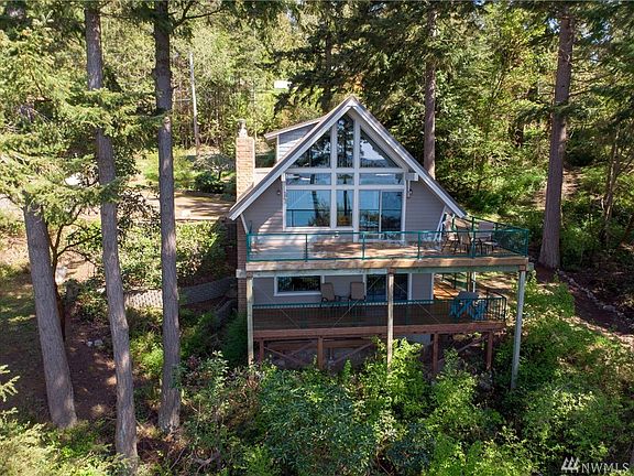 Three lots provide 210' of waterfront with a gentle path to the waters edge and a view looking directly down Guemes Chanel. Enjoy ships and boat activity with a backdrop of spectacular sunsets on an upper or lower deck and floor to ceiling windows. This cute tastefully remodeled home is move-in ready! A bedroom and bath on each level, living room and rec-room, provides plenty of sleeping room, gathering space and separation. Nestled amongst the evergreens, perfect for your home or investment.