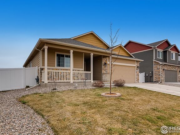 Beautiful ranch style home in Wellington Downs. This 3 bedroom 2 bathroom home boasts an open floor plan and 10 foot ceilings with an abundance of natural light. The stainless steel appliances and large island in the kitchen are an added bonus to the home! Enjoy sitting on the covered front porch or around a fire pit in the newly landscaped back yard with freshly laid sod. The unfinished basement gives you plenty of room for storage or to expand in the future. The home is located with easy access to I25. See the 3D tour virtual showing.