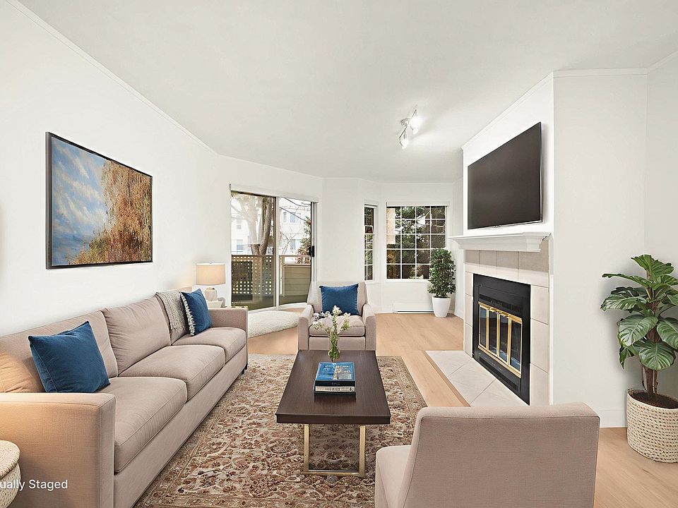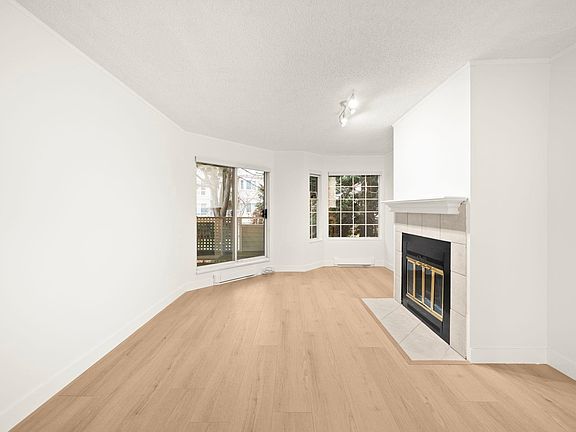 Stunning Fully Renovated 635 sqft 1-Bedroom Condo in the Heart of Richmond! This home truly feels brand new with designer laminate flooring and fresh paint throughout – perfect for first-time buyers or savvy investors. The gorgeous kitchen boasts quartz countertops, wood shaker cabinets, subway tile backsplash, and stainless steel appliances. Cozy up on chilly evenings by your wood-burning fireplace, then step out and relax on your serene, tree-lined private balcony on the quiet side of the building. Well-maintained building with recent upgrades that include roof, boiler, elevator, and balconies. Includes 1 covered parking spot and a storage locker conveniently located on the same floor. Just minutes to Canada Line, Richmond Centre Mall, Richmond Public Library, and Minoru park and pool.