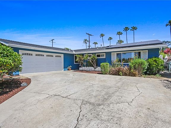 Rare Opportunity in Surf City! Charming single-story 5-bedroom, 3-bath home located on a quiet cul-de-sac in Huntington Beach. Situated on one of the largest lots in the neighborhood—over 8,800 sq ft—with ADU, pool, or pickleball court potential. Ideal layout includes two spacious primary suites on opposite ends of the home, perfect for multi-generational living or guest accommodations. The expansive backyard offers a peaceful retreat with multiple sitting areas, raised garden beds, and a variety of mature fruit trees, including lemon, lime, avocado, tangelo, apple, and peach, plus an established artichoke bush. The newer primary suite addition (approx. 10 years old) features laminate flooring, abundant natural light, a large walk-in tile shower with bench, and French doors leading to a covered patio. The kitchen includes a granite breakfast bar, glass-front cabinetry, stainless steel appliances, built-in wine rack, and lazy Susan, all with a view of the tranquil yard. Additional features: brick gas fireplace with custom mantle, crown molding, finished garage with recessed lighting, interior laundry room with ample storage space, drought-tolerant and low-maintenance front yard with seating area, multiple access points to the backyard, and paid-off solar panels. Located just miles from the beach, this home combines comfort, charm, and functionality in a prime Huntington Beach location. Don’t miss this unique opportunity!