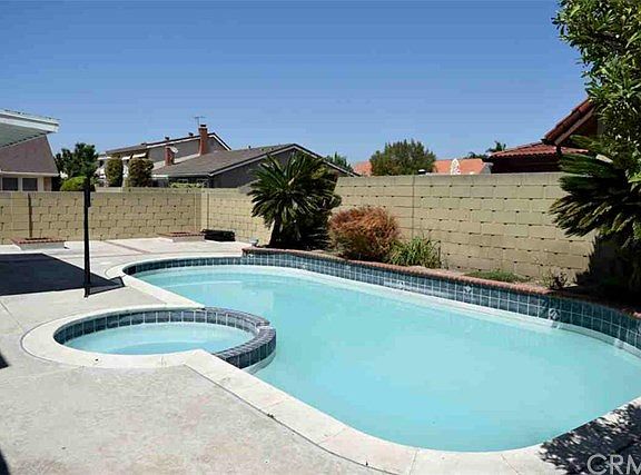 Bank owned. Rainbow colors are gone! New interior paint, all white now. Ponderosa pool home. Last sold for 739K in 2005, borrower owed 799K. Great floorplan w/vaulted ceilings and 1 bed + full bath downstairs, family room, brick fireplace, large master, pool and spa, blockwall fenced, corner lot. On quiet interior street in best La Palma area 1 block from Rancho Verde Park and surrounded by Sunshine Park, Central Park and Cerritos Regional Park (the big one). Great schools: Los Coyotes Elementary, Walker Jr. and Kennedy High.