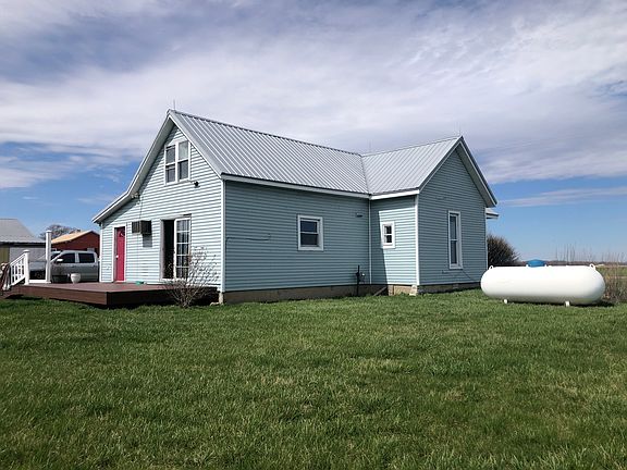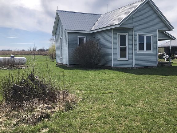 This 1910 Vintage Farmhouse boasts generous spaces. Featuring 2 Br, 1.5 Ba. This home has so much potential...bring your contractor & your visions. There maybe additional square footage above the kitchen for an additional bedroom. There is a room above as found by inspections from previous sale, but not sure how to get there. The seller never got around to investigating. There has been painting, new carpet, new gas fireplace & a new ceiling/light fixture in the living room. The kitchen cabinets & flooring are in good condition. Vinyl siding, metal roof & low maintenance composite decking. Enjoy cookouts on the open back deck & bask in the sun with your glass of sweet tea. Have you ever noticed how dark it gets in the country? ... the backyard is perfect for a little fire while you sit & wish upon the falling stars...imagine! There are 4 flat acres...whether you're wanting a garden or to try your hand @ those cute little fainting goats you'll have the room to do it here. There is a smaller metal building with easy wash out concrete floors currently being used as a chicken coop. The metal garage is 24'w x 34"d it has 2 electric garage doors as well as a service door. It has concrete floors & plenty of room for your vehicles, mowers, tractors & toys. Easy access to I-74 & Michigan Rd. Quick potential available.