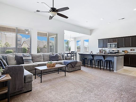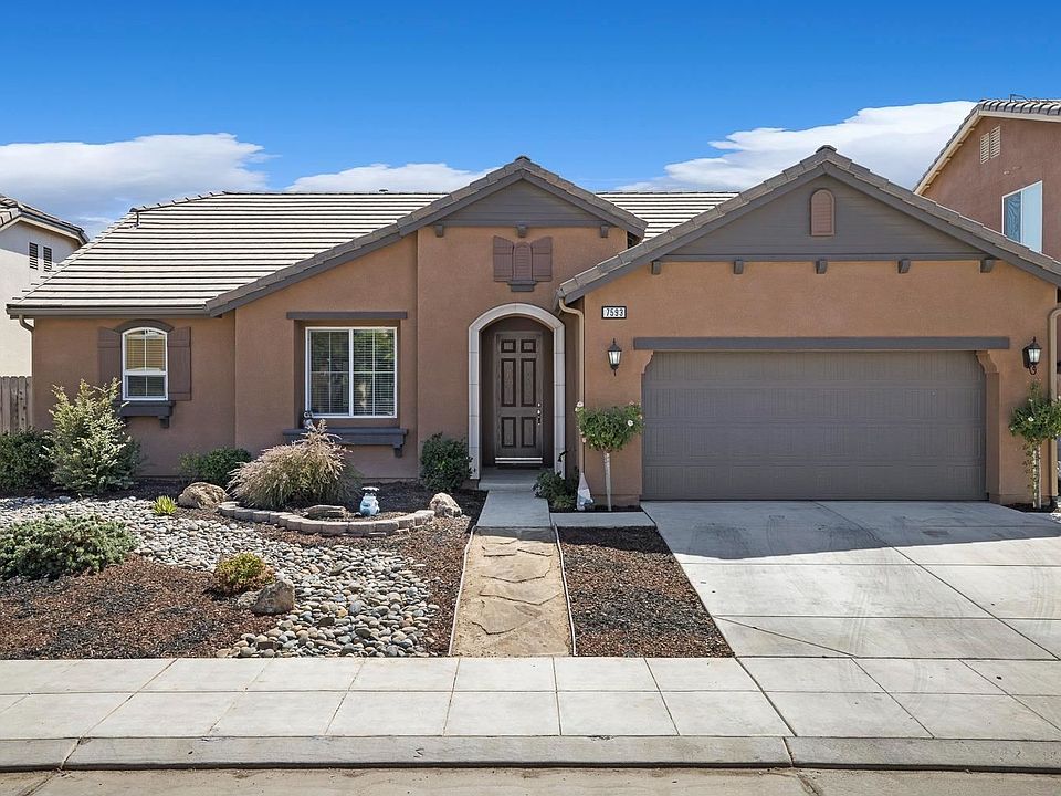 This stunning Bonadelle home is conveniently located in Clovis Unified Schools, and ready for its new owner! As you arrive you will be pleasantly greeted to a lovely landscaped, drought resistant front yard. Inside you will be welcomed to a spacious living room with soaring ceilings, which flows nicely into the chefs kitchen. The stunning kitchen features: stainless steel appliances, gas stovetop, enormous center island, granite countertops, tons of cabinet space and eating area. Down the hall you will find extra storage cabinets, 2 guest bedrooms, laundry room, and the grand en-suite. The en-suite has a nice walk-in closet and the bathroom has a glass shower, soaking tub, and dual sinks. The backyard has tons of grass area, added concrete area and a covered patio. Did I mention the tile roof, tankless water heater, solar, and EV vehicle outlet in the garage? This home is practically perfect in every way! Call and make your appointment today!