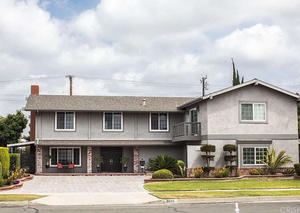 ABSOLUTELY SPECTACULAR REMODELED AND UPDATED TWO LEVEL HOME!!! This beautiful two level 5 Bed 2.5 Baths home is located in the desired area of Buena Park in walking distance to shopping centers. This home features an recently remodeled kitchen with a huge walk-in-pantry, private laundry room, the beautiful family room with surround sound & fire place and its perfect to entertain, upstairs you will find 5 bedrooms, spacious master has a built in armoire ,the walk in closet has a custom closet organizer with a skylight, the master bath has a skylight as well. the beautiful backyard has outdoor speakers and a storage.,auto sprinklers, the 2 car garage features an electrical car charging station. Run don't walk!! This one won't last!!