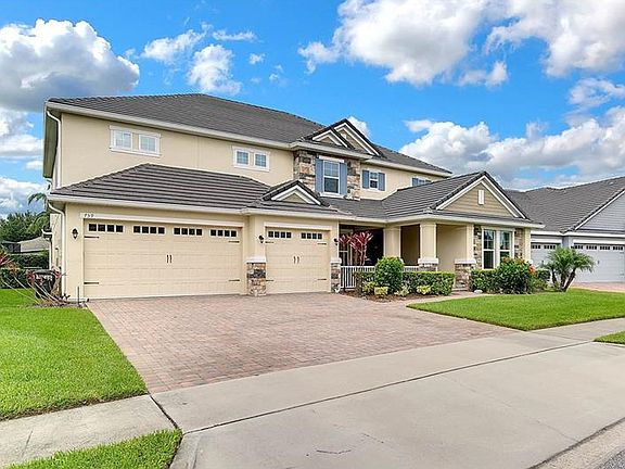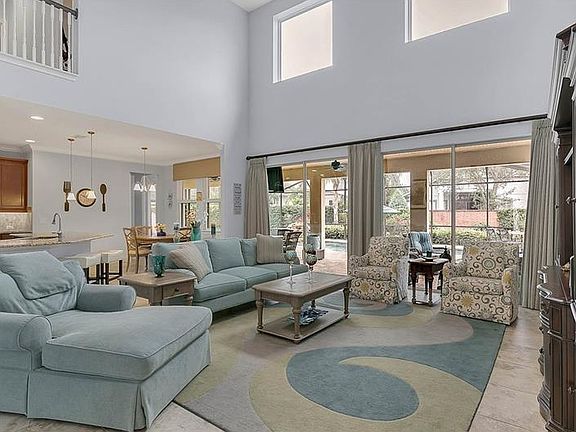 Watch Disney Fireworks from your front porch every night in this stately Windermere classic! Step through the ornate wrought iron encrusted door into the splendor of this picturesque home. Volume ceilings provide a grand ambience while the wood floors in the Formal Dining Room add warmth and elegance. Move into the chic open Great Room overlooking the sparkling Salt Water Pool. The Kitchen is every Chef's dream, complete with an Island, Double Oven, Wine Rack and Butlers Pantry. Large Breakfast Nook also provides convenience for busy mornings. This spacious home features Double Master Suites! The luxurious first floor Master is a private retreat, for rest and relaxation. The second floor Master boasts a screened balcony, perfect for morning coffee. Adorned with crown molding and soft color palette throughout that will complement any decor. Outside, enjoy the serenity of the bubbling waterfall flowing into the Salt Water Pool. Entertain from the Outdoor Kitchen located on the oversized lanai, great for all of the family gatherings. This home is also enhanced with a Kinetico Water Filtration system. The community features a fishing pier on Lake Burden, walking trails, tennis courts, pool and baseball diamond. Close to all attractions, shopping, dining and entertainment. Call now and schedule your private showing.