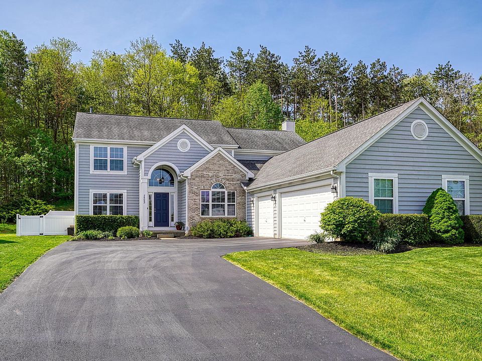 This Summer will be great with your own in ground heated/cooled pool! A wonderful home that backs to woods and reserve area for complete privacy. Entertainer's Dream in the finished lower level with built in wet bar, game table area, TV area and large billiard room with pool table that stays! 1st floor den/home office if you work remotely! Huge owner's suite with jacuzzi tub, walk in shower. and new barn doors. An oversized 3 car garage also features an additional 180 sq foot bump out ideal for workshop or boat storage. So many upgrades incdlg brand new carpet and interior paint throughout, beautiful new quartz countertops in kitchen and baths, new SS appliances, new lighting. Roof (2011), new paved driveway (20), Furnace/AC updated, hot water tank (21) and the list goes on