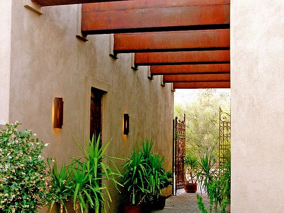For more information on this property, contact the Listing Agent, Pamela and Roger Harlan at (520) 977-8660 or P-R@harlans.com. Step into gated courtyard & savor the perfection of Mystic Canyon Dr. Beautifully designed with spacious rooms overlooking outdoor living room patio, ramada, pool & panoramic Catalina Mtn views. Elegant & cozy--a place to easily entertain or enjoy the desert quiet. Flowing floor plan enhanced by natural light. 4 bedrooms (split plan) + home office, media room where family can escape into the fantasy world of film. Speaker systems indoor & out. Great attention to detail includes rich, deep brown polished concrete floors that are beautiful background for your rugs & furniture, tall solid alder doors throughout & built-in architectural elements. Roof-top patio offers a great place to entertain friends and enjoy the fireworks from nearby Westward Look.