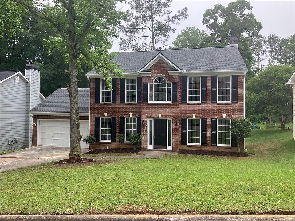 Buy This Home with Little to No Money Down! A special 100% FHA financing option is available that covers the required 3.5% down payment. Many buyers qualify with just 1% or less down — and there are no income limits. Nestled within the desirable Hills at Waters Edge community, this 4 bedroom 2.5 bathroom brick front home is ready for you to claim it as your own. The recent upgrades enhance both aesthetics and functionality, including new flooring, new roof, new heating and air, updated bathrooms and freshly painted. Step into this modern kitchen, where elegance meets functionality. Recently updated with luxurious granite countertops that exude sophistication as well as gleaming new stainless steel appliances. The eat-in breakfast area invites you to enjoy your morning coffee in comfort. The community amenities of Waters Edge Subdivision are a true highlight, offering a lake, swimming pool, clubhouse, pavilion with a fireplace, tennis courts, basketball court, playground, and volleyball. The Community is only a few mins from I-285, I-85 and I-20 for easy access in and around metro Atlanta. Come see this one today!