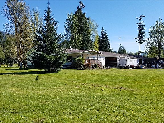 Picturesque creek front 2.5 acre setting in foothills of the North Cascades. 1512 sq ft double wide home with 3 bedrooms, 2 baths, open floor plan, efficient kitchen, and a spacious master suite with sitting/office area, attached 2 car carport, (easily enclosed) 3 bay 1680 sq ft shop, with wood and gas heat. Additional outbuildings, gazebo with outdoor kitchen, all situated on flat usable acreage with 240 ft of Grandy Creek frontage. Come take a look.