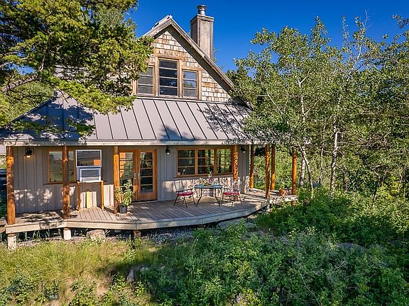 Situated in the mountains less than a 15-minute drive from downtown Bozeman, this +/- 1550 square foot mountain home on +/- 20 acres was designed with an Asian architectural style combined with a rustic touch that exudes a very Zen-like atmosphere. This home consists of 1 bedroom, 1 full bath (Japanese style wet room, w/ soaking tub), and a generous-sized loft. Built with a standing seam metal roof, wood beams, spray foam insulation, fir trim, doors, in-floor radiant heat, a wood stove, a wonderful wrap-around porch, and windows that were designed to take in the natural light. The oversized 1 car garage is plumbed with a shower, and composting toilet and can be set up for seasonal use. Septic was designed for a 3-bed home and the owner has some plans for expansion. Long distant views to the west afford the opportunity to take in the many beautiful sunsets over the Gallatin Valley and the south-facing front door and windows take in exquisite views of Bear Canyon. Great AirBnB potential!