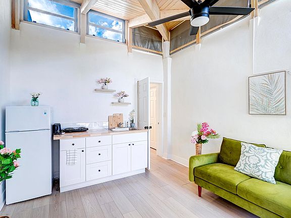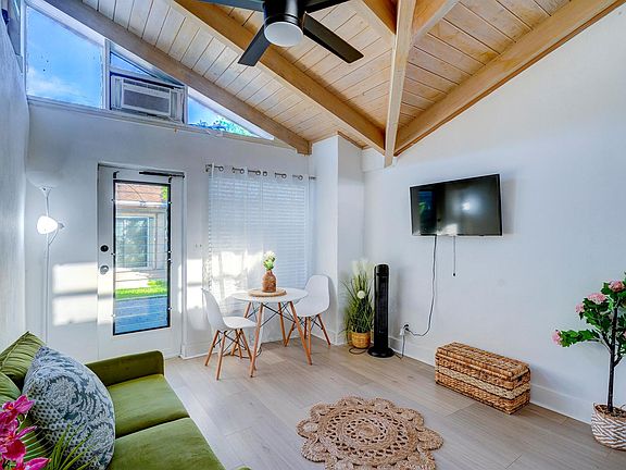 Welcome home to this light and bright, fully furnished 1 bed / 1 bath guest suite with private access. Inside- you're greeted by soaring wood-paneled ceilings, plenty of natural light, and thoughtful finishes throughout. The cozy living area opens to a sleek kitchenette, while the spacious bedroom offers generous closet space and room to spread out. Outside- lounge in the screened gazebo, complete with warm cafe lights throughout.Best of all, utilities are included!