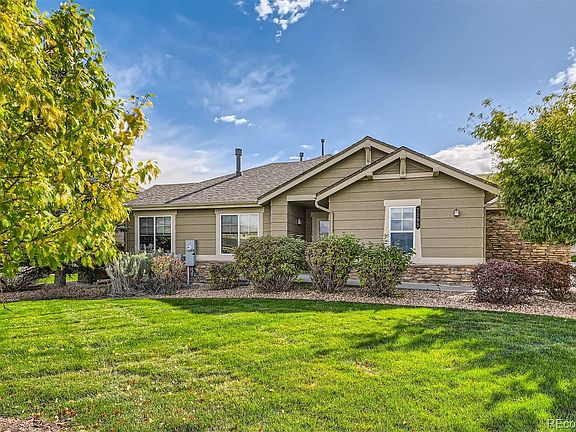 Welcome home to a wonderful light & bright end unit townhome located in the highly sought-after Ridgeview Eagle Bend Community. The desirable ranch-style floor plan features 3 bedrooms and 2 bathrooms. Upon entering you will find a large family room with gas burning fireplace - perfect for chilly Colorado evenings. A nicely appointed kitchen with stainless steel appliances and 42” cabinets and a spacious dining room. Next, you will find a large master bedroom with en-suite bathroom and walk in closet. On the other side of the townhome, you will find an additional bedroom and full bathroom. Main floor laundry. 2 car attached garage. In the basement you will find a large living/entertainment/flex space and a 3rd bedroom and BRAND NEW CARPET. BRAND NEW FULL BATHROOM CURRENTLY BEING INSTALLED IN BASEMENT and a large storage/utility room for all of your belongings. Brand new water heater! Lovely location close to absolutely everything - dining, shopping, Aurora & Cherry Creek Reservoir, Liberty HS and multiple golf courses including Saddle Rock & Heritage Eagle Bend, E470.