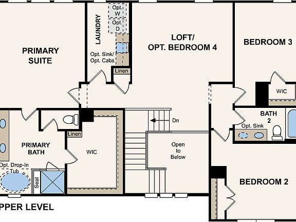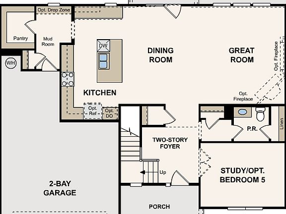 This spacious Two-Story home offers 3-5 Bedrooms 2.5-3 Baths and a 2-bay garage. A main level that includes a spacious kitchen with a walk-in pantry off of the mudroom, open dining area, and great room with optional fireplace. The open two-story foyer also accesses the study or optional 5th bedroom and bathroom. The upstairs second floor includes the Primary suite including a private bath with double vanities, shower with separate tub, and a large walk-in closet. You can find two bedrooms and a second full bathroom. A loft area, that can be optioned into a 4th bedroom and laundry room complete the upper level.