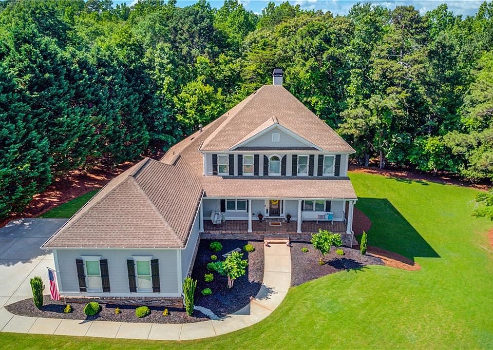 No need for boat/RV storage you can keep them at home. There are no HOA restrictions on boat/RV/Toy parking at home. Welcome to your dream home, an exquisite two-story retreat designed for luxury and comfort. Nestled on a sprawling 0.9-acre lot with Lake Lanier Access! Dive into the saltwater swimming pool, perfect for entertaining guests and summer fun. The pool features two sheer descent waterfalls and an 8 ½ feet deep end, and the pool includes a heater for those cooler days. The main level welcomes you with an inviting entry foyer, showcasing hardwood floors in main areas and 2-inch faux wood blinds throughout. The owner’s suite, located on the main floor, boasts a tray ceiling, crown molding, and a cozy bay window sitting area. The en-suite bathroom is a sanctuary with tile floors, a jetted spa bath, separate shower, double vanity with extra storage draws, and a spacious wrap-around walk-in closet. The heart of the home is the expansive family room, drenched in natural light from its large windows and featuring a stacked stone raised hearth fireplace with a gas starter, built-in bookshelves, and cabinetry. Perfect for a family gathering or entertaining friends, this spacious room is in the center of the home. Adjacent, the gourmet kitchen is a chef's delight with granite countertops, double ovens, stainless steel appliances, a center island with storage, and a large walk-in pantry. Casual meals can be enjoyed in the breakfast room, while the formal dining room offers an elegant space for larger gatherings, complete with crown molding, shadow box molding, and chair railing. A covered porch off the breakfast room provides a serene view of the pool area, perfect for morning coffee or evening relaxation. Upstairs, three spacious bedrooms with double-door closets and ceiling fans await, including one with a private bathroom. A loft area provides a flexible space for a home office or playroom, while an additional full bathroom features a double vanity and tub/shower combo. The terrace level expands your living space with a large family room featuring a tray ceiling and built-in sound system, an exercise room with recessed lighting, a versatile recreation/flex room, and a full bathroom. A guest suite with tray ceiling, crown molding, ceiling fan, and double-door closet offers comfort and privacy for visitors. This level also includes a storage room and an unfinished area with exterior double-door access, ideal for additional storage needs. The meticulously landscaped exterior includes a professional irrigation system in the whole yard, a spacious 3-car garage with remotes, and treelined, offering privacy for the beautiful, flat green space and pool area. Additional features of this home include a Ring doorbell for added security, gas heat, a tankless hot water heater, three HVAC units, and recently installed larger gutters. Smoke detectors are installed throughout for safety. Located in a community with a volunteer HOA, residents enjoy exclusive access to a community dock with a swim platform and lake access. This property offers the perfect blend of luxury, privacy, and convenience, making it your forever home. Summer Savings: Up to 4K your way with our preferred lender. Use for closing costs or rate buydown. Terms and Conditions Apply.