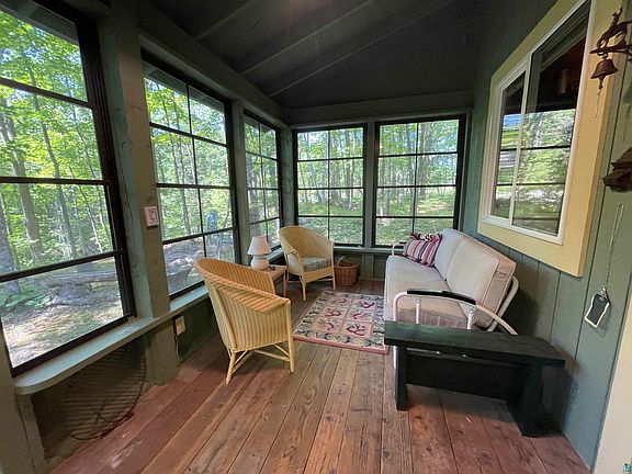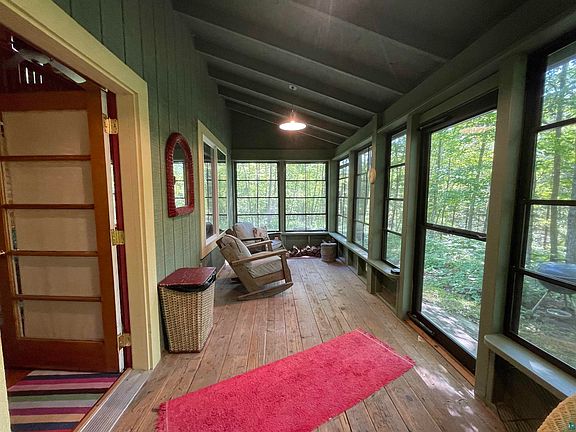 One of the Nicest Bungalow Cabins in the area! Sitting high above the Burman Creek on 7.87 acres is this exceptional home offering a three season porch, open living and kitchen area, main floor bedroom, back entry room, bath room and a ladder to the L shaped loft with a cozy window seat. Pine wood walls and plank flooring throughout with a wood stove and electric baseboard for winter use. It is being sold turn key so you just need your suitcase to enjoy a quiet weekend in the woods! There is an outhouse with a holding tank. There is no Well so the only water source is the rain barrel collection system that is plumbed under the cabin for seasonal use. Built on cement piers with solid wood frame construction... could easily be plumbed since it’s open under the cabin. Bright and Colorful....Definitely as Must See if you like the Woods and Privacy!