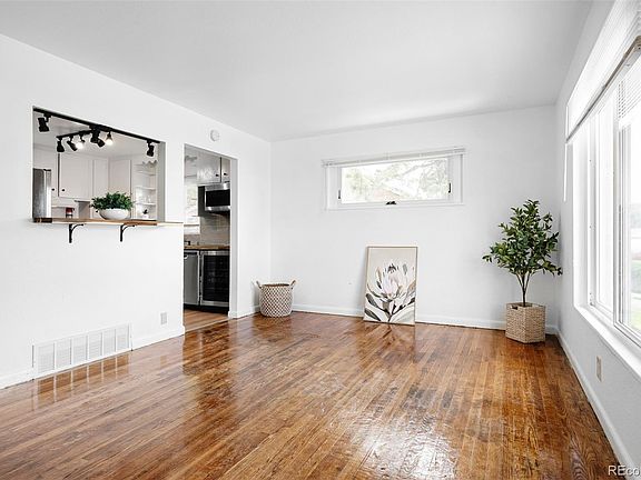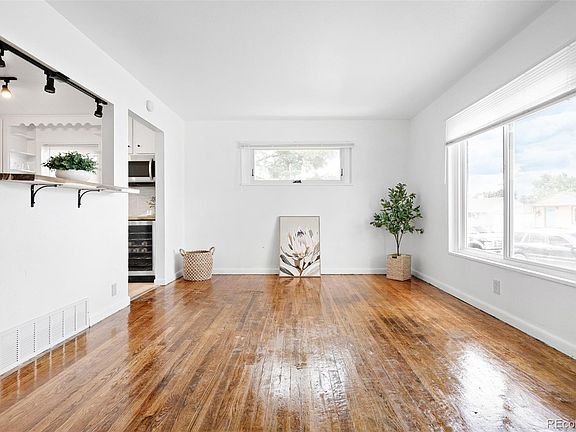 A fresh renovation breathes new life into this charming Federal Heights home. Wrapped in a blonde brick façade, a quaint exterior welcomes residents into a luminous layout flowing with polished hardwood flooring and crisp white wall color. Natural light floods a spacious living room through an expansive picture window. Peer through a pass-through window into a newly updated kitchen showcasing butcher block countertops, all-white cabinetry and stainless steel appliances including a beverage refrigerator. Three sizable bedrooms offer light-filled retreats with wide windows. Freshly updated, a full bathroom is highlighted by neutral tiles and vanity storage space. Featuring high ceilings, a finished basement offers flexible living space with a large recreation room, a versatile bedroom and a bath. Retreat outdoors to discover a fully fenced backyard presenting the perfect opportunity to plant a vibrant garden. A central location offers easy access to local amenities and Sherrelwood Park.