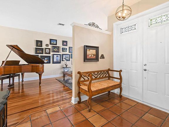 Located in the Prestigious community of Lake Charleston, this magnificent home offers four bedrooms, two-and-a-half baths, a two-car garage, and amazing spaces for living, relaxing and entertaining. Original owners. Gorgeous Mexican tile, sparkling hardwood flooring, upgraded baseboards, and plantation shutters adorn the first level adding wonderful character and charm. Host guests for diner while remaining part of the action in the fabulous open concept kitchen. Solid wood cabinetry, newer stainless-steel appliances (Refrigerator replaced in 2017, dishwasher in 2019, and range in 2020), granite counter tops with bar seating, upgraded hardware, and large pantry make this space complete. Grab a quick bite in the cheerful adjoining breakfast area with large window, or for (See Supplement) more formal gatherings, sit for a delicious meal in the elegant dining room with chandelier. An inviting family room is great for watching your favorite show and has large sliding doors that open out to a fantastic screened-in patio. Also on the first level, a dedicated laundry room with cabinet storage, and half bath with new pedestal vanity and new toilet installed. Upstairs, retreat for a tranquil night's sleep in the luxuriously spacious master suite with tray ceiling, and large walk-in closet with built in shelving. The spa style ensuite bath boasts dual vanities plus an additional makeup vanity with a framed mirror, soaking tub, tiled walk-in shower, upgraded light fixtures, and new toilet. All three additional bedrooms are spacious and comfortable with pleasing natural lighting, upgraded fans and large closets with built in shelving. The secondary bathroom has a double vanity with upgraded hardware, large framed mirror, upgraded light fixture, new toilet, and tiled shower/tub combo newly repainted/resurfaced in 2021. Out back, the perfectly manicured yard is wonderfully private with tall hedges and Clusia planted on either side of the home. The exterior has a complete set of accordion shutters, plus hurricane impact window for second floor secondary bathroom installed in 2017, and hurricane rated garage door installed in 2008. Additional recent upgrades include, new gutters installed (2017), newer AC thermostat (2017), interior of home painted (2014), tinted all windows on west side of home (2010), nest cameras (2) & nest doorbell included. Roof cleaned (2020), windows cleaned (2021), dryer vent cleaned (2021), carpet professionally cleaned (2021). The low HOA of $150/month includes internet and cable. Amazing community amenities include two pools, walkways, two tennis courts, two basketball courts, two volleyball courts, a soccer field, and three playgrounds. This community is Ideally located within an A-rated school zone, close to shopping, restaurants, entertainment and more! ** Sellers will be including piano in the sale of property. **