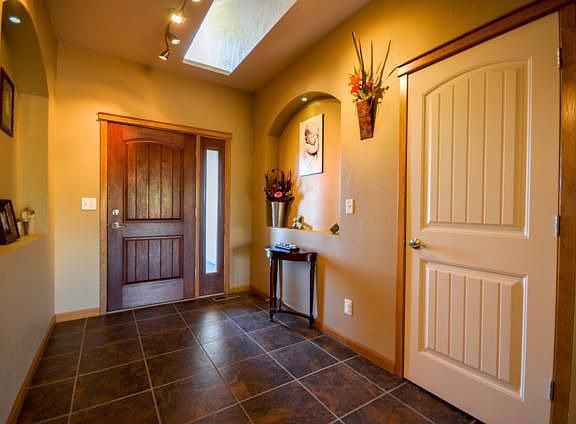 2009 Parade of Homes immaculate one level living for a new family or downsizing. Attention to detail is evident from the first moment you step into this home. The formal tiled foyer has curved alcoves, a tiled floor and a skylight that floods the space with dramatic lighting. The open floor plan welcomes you to the living room with a stone fireplace and walnut hardwood flooring. The ultimate entertaining kitchen overlooks the entire space. Knotty Alder cabinetry throughout and gentle glide drawers compliment this spacious kitchen. The laundry room is conveniently located between the bedrooms in this 3 bedroom, 2 bath home. Master bedroom is a quiet retreat with views of the backyard, a tray ceiling and adjoining master bath. Beautifully detailed tile in the shower and bathtub surround attest to the careful craftsmanship in this home. Ceiling speakers throughout the home and backyard. Separate office/den off of kitchen. Call now for a viewing of this special home.