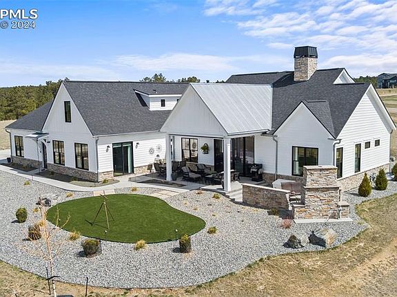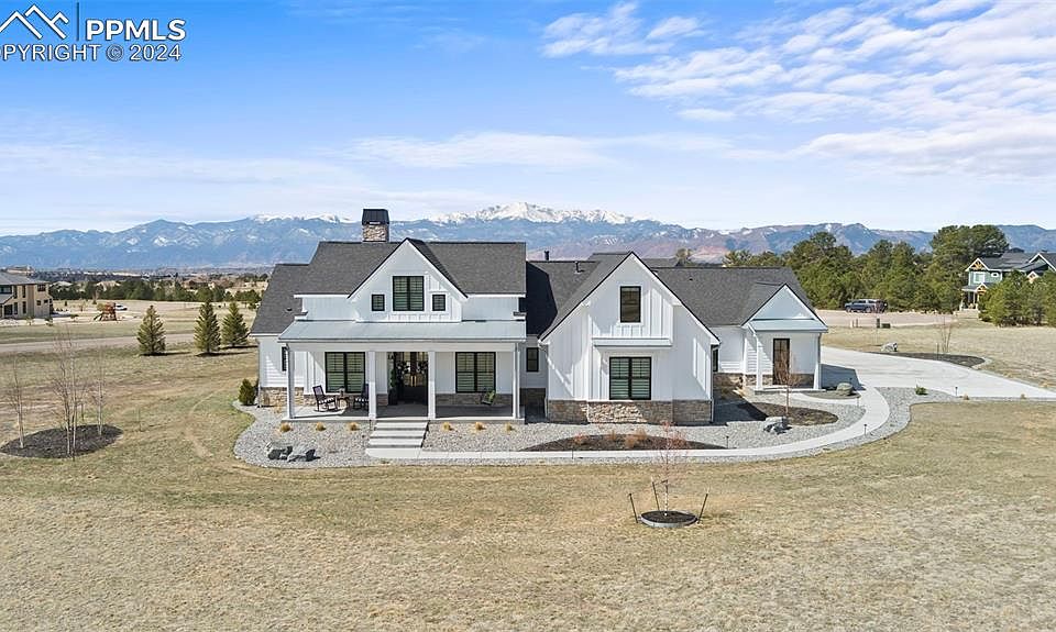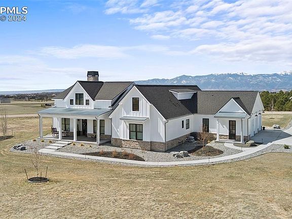 Experience luxurious living in this exceptional residence in Highland Park 3, where main level living takes center stage. Spanning 2.6 acres, this 2-story home offers more than 4,700SF of space. Boasting 5 beds, a bonus room, 6 baths, an unfinished area, along w/ an oversized 3-car garage, luxury, comfort, and functionality seamlessly blend. As you step inside, be greeted by the grandeur of the great room, featuring 12-foot beamed ceilings, a 10-foot slider, and a gas fireplace framing the majestic Pikes Peak views. The gourmet kitchen is a chef's dream, boasting a quartz island with a 2-inch edge, Thermador appliances, a Subzero refrigerator, Avallon wine fridge, farm sink, walk-in pantry, and ample custom soft-close cabinetry. On the main level, two expansive suites await, each offering luxurious en-suite baths and custom walk-in closets. The primary bath provides a lavish retreat with marble countertops, custom cabinets, shower, and a soaking tub. Another generously sized suite features a walk-out slider and an en-suite bathroom with an oversized shower. Heading towards the oversized 3-car garage, w/ upgraded epoxy floors, you'll find a built-in bench with cubbies for added convenience. Adjacent to this space is the laundry area, equipped with a sink, cabinets, and LG washer/dryer. Completing the main level are a half bath, dining room, and two beds, each with adjoining baths and closets. Upstairs, discover another bedroom suite, a full bath, and a bonus room. An addl. large unfinished room awaits customization to suit your needs. Outside, the covered main-level patio sets the stage for outdoor gatherings, featuring a cozy wood-burning fireplace and ample seating options. Appreciate the low-maintenance xeriscape landscaping and charming board and batten siding with corbel accents and galvanized 5-inch gutters, further enhancing the home's curb appeal. Located in school district 20 and just minutes away from all the city amenities, this home is a must-see!