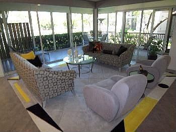 Tropical foliage leads you in to this charming unit Enjoy the lake view from wrap terrace Tile throughout living area carpet in bedrooms Neutral kitchen boasts an island and granite counter tops with newer appliances Breakfast area off kitchen in addition to dining room Track lighting Newer AC Storm Shutters Furniture Available