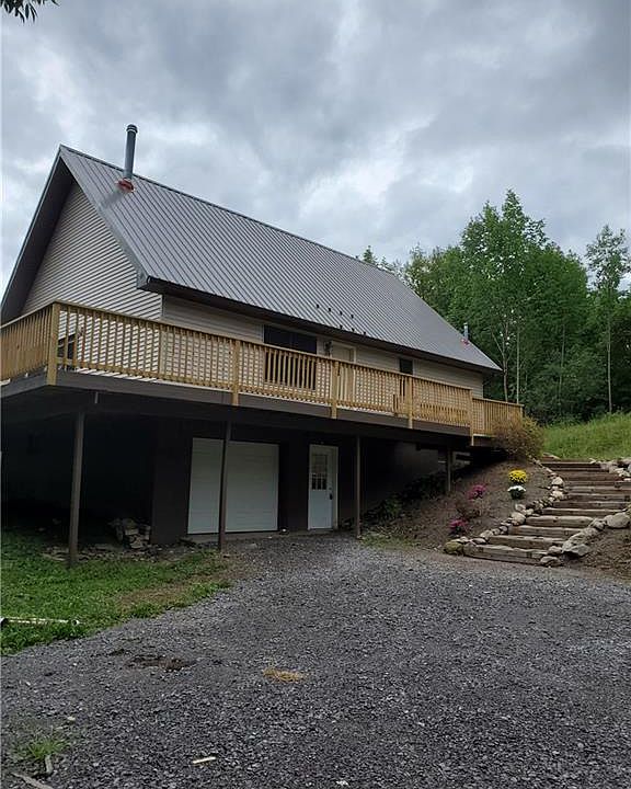 You'll love the peaceful over 4 acre private setting of this year round contemporary home. Large deck around home. All knotty pine interior, open living room kitchen with cathedral ceilings, loft could be 4th bedroom. 2 bedrooms 2 full baths on main floor, 1 bedroom, full bath and rec room in finished walkout basement. Seller is relocating out of state. 24 hours notice to view. Well volume and potability along with septic pump and inspect were completed within last year. Home has a new whole house generator, new central air conditioning, metal roof, vinyl siding. Nature lovers paradise!
