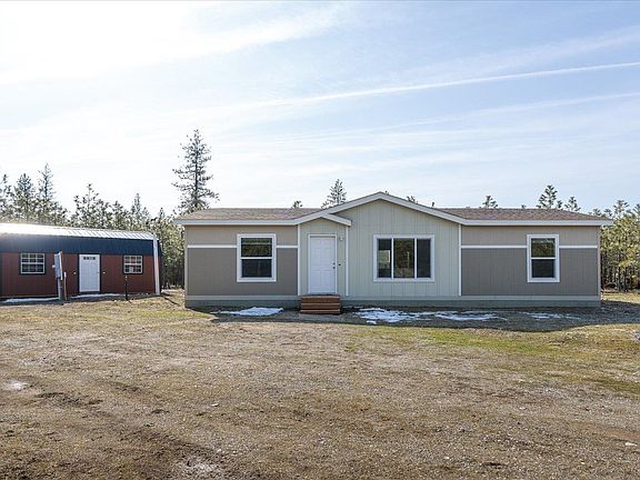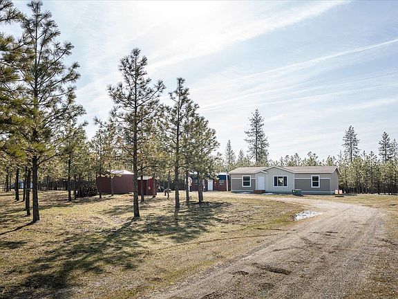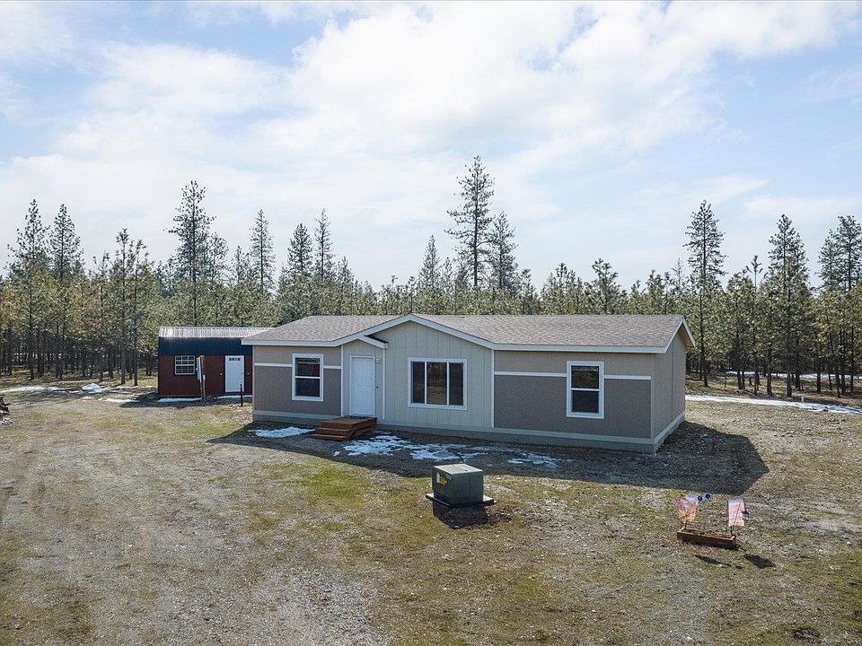 Looking to live a little rural? Welcome home to this 2021 MFG Home by Palm Harbor that is well placed on 4.7 acres of flat treed land. The home features a spacious open concept, with the master suite sporting a large walk in closet. The home also boasts 50yr fiber cement siding, architectural shingles, low-e dual glazed windows, and insulation that is rated R25 in the ceiling, R11 in the walls & floors. Over 7K of options added to this home. It comes with a newer storage shed, single car detached garage, and a pump-house for the private well. Property is conveniently located approx. 1.5 miles from Lake Spokane Campground and boat launch.