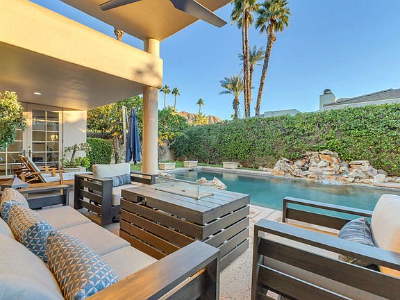 Nestled in a coveted Indian Wells location near Eldorado Country Club, this recently renovated corner lot spans over 0.27 acres and offers the ultimate desert lifestyle. This updated 3-bedroom, 3-bathroom home showcases modern luxury and thoughtful design. The stylish new kitchen features white cabinetry, top-of-the-line Viking appliances, a Sub-Zero wine refrigerator, and an ice maker, perfect for entertaining. The expansive primary suite includes a versatile bonus space, ideal for a home office or workout area. Step into the backyard oasis, where south-facing mountain views frame a saltwater pebble tech pool, spa, and cascading waterfalls. A cozy firepit completes the space, making it perfect for relaxing or entertaining under the stars. Offered fully furnished per inventory, this stunning home is move-in ready. Don't miss your chance to own a piece of Indian Wells prestige. Call today to schedule your private tour!
