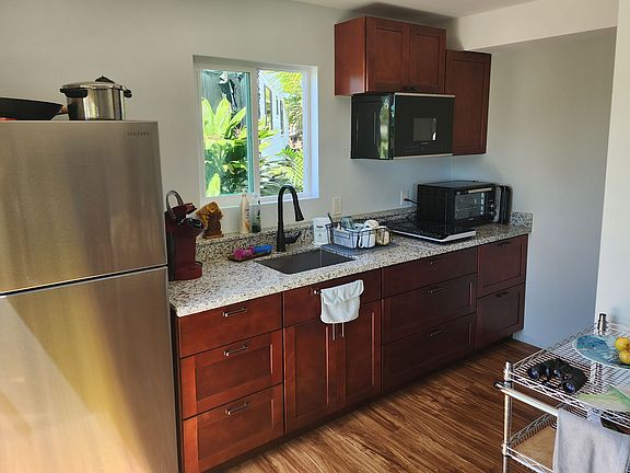 Step into this newly built, 2-bedroom furnished apartment, a private oasis on the lower level of our home. With a separate entry, a shaded and private lanai with an ocean view, and a spacious nearly 700 square feet, it's the perfect blend of privacy and comfort. Located six blocks uphill from shore access, it's just minutes from beaches or town and offers on-street parking.