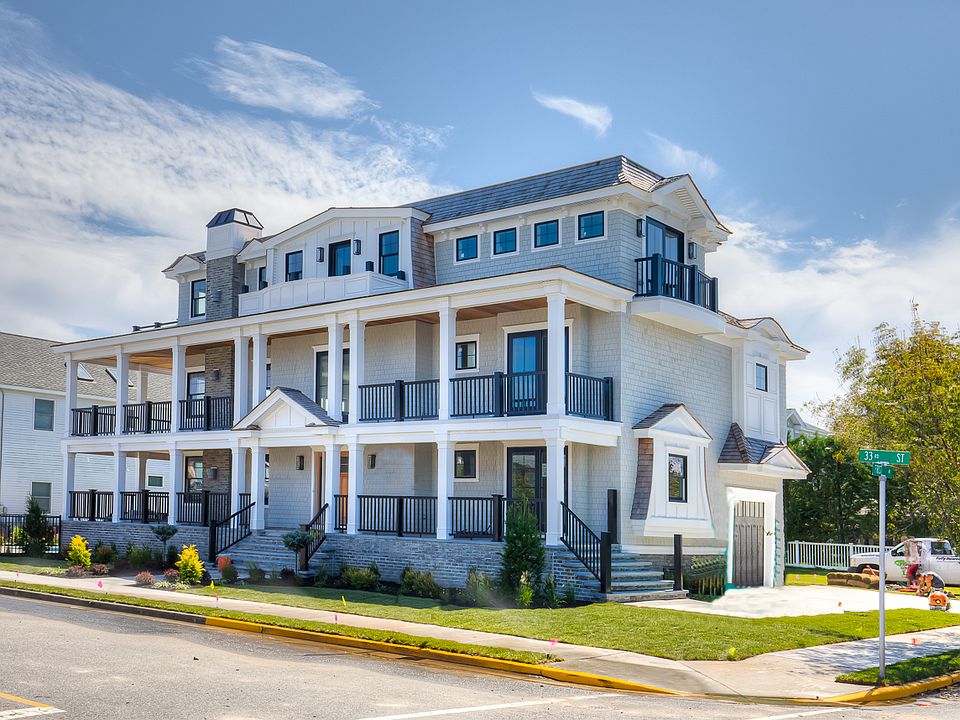 This brand new impeccable beach block home in Avalon is offered in an exceptional location with unobstructed Ocean views and modern luxury amenities that will certainly please the experienced home buyer. With a private pool and outdoor entertainment area you find yourself only steps from the iconic Avalon Beach Fishing Pier and within walking distance to the coveted Avalon business district. In collaboration with Poseidon Custom Homes and Studio One Architecture, this corner home boasts a stand out facade with top-of-the-line materiality including blue label perfection cedar roof shingles, copper flashings and valleys all employed with meticulous ornamental detail. Exterior features include a distinctive contrast between the beautiful 'Fraser' eastern white cedar shake in Seacoast grey and the sleek 'Ashland' brick clad foundation. Form follows function in this home that features 6 Bedrooms 6 full and two half Bathrooms. Masterfully designed and boasting over 4500 square feet of living space the developers offer gracious public spaces all with meticulous detail and unmatched quality. The first floor has a great balance of tile and hardwood throughout, including all gracious en-suite bedrooms. Moving up through the two landing stairway your view opens up to bright and airy public spaces all clad with beautiful white beams, coffered ceiling, 7.25" colonial trim baseboard and crown molding. Here you are introduced to the open kitchen, dining and living area with plenty of room to entertain your family and friends. Highly detailed and abundant with natural light you begin to appreciate the strategic and tastefully modern great room that frames a beautiful Ocean View. Features include a gorgeous chefs kitchen with custom cabinetry, thermador appliances and quartz counter-tops. With first, second and third-floor fiberglass decks and an over sized 1.5 car garage, this is a perfect platform to enjoy Avalon's stunning white sandy beaches and reclusive beach lifestyle. Enjoy out-door living with the private heated cool blue diamond pool, custom built stone barbecue station, state-of-the-art security system, marble surround mantles, four-story elevator with double door entry, 2 laundry rooms and many more custom upgrades for the discriminating buyer. This home is loaded with amenities, space, and detail offering a perfect balance of architectural sensibility and breathtaking Beach views.