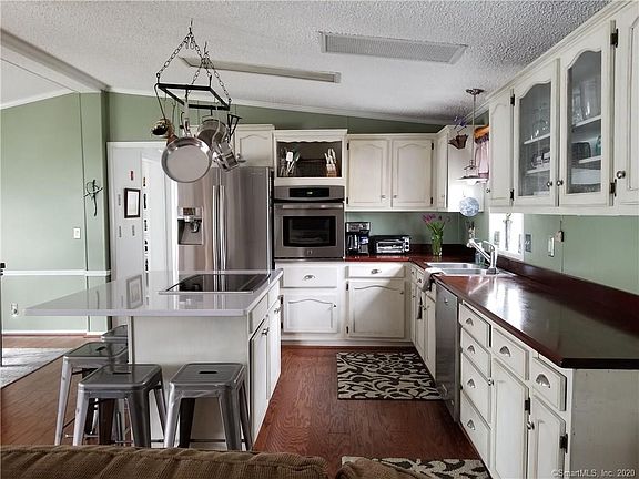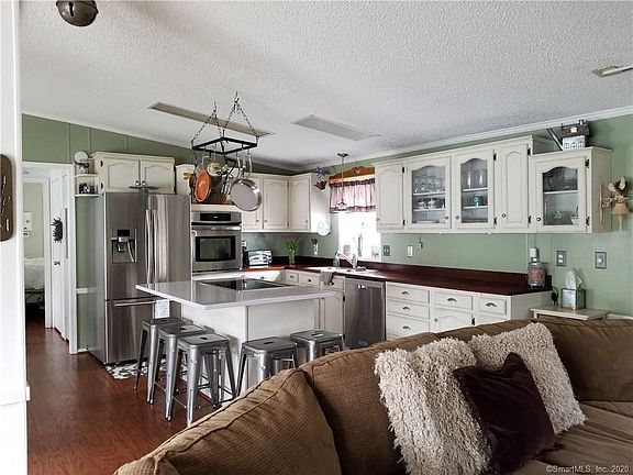 Really nice 1,248sf. Marlette. Open floor plan, private front entry, stainless steel appliances, center Island kitchen, bedrooms front and rear, 2 full baths and more. Wood flooring and 60"wall mount TV remains. No pets or smokers in this home.New furnace 2019, shingled roof, rear enclosed porch leads to rear covered porch which leads to a very nice rear patio. Shed, central air and additional storage area. All buyers subject to park approval. Dog allowed with park approval. Ground lease presently 525. includes water, trash pick up and septic.